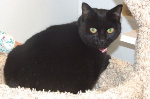 They say I’m a “green-eyed lover.” I’m a beautiful lady who was found when I was a kitten as a stray and taken in by a family that wasn’t able to keep me. I went to live with a new mom and pop shortly after I came to TALGV and they say that I’m a sweet, gentle lady who is very playful (I love ribbons, strings, tissue paper and little stuffed mice), but I sort of had “issues” with the resident dog after a while, so here I am back one more time. I’m a striking, shorthaired, all black gal (with those drop-dead gorgeous eyes!), so I’m hoping to find a family where I can be your only love. I promise to be all you want from a friend if you’ll just give me another chance, and I know I’d look elegant with a bright red bow sitting by your window!