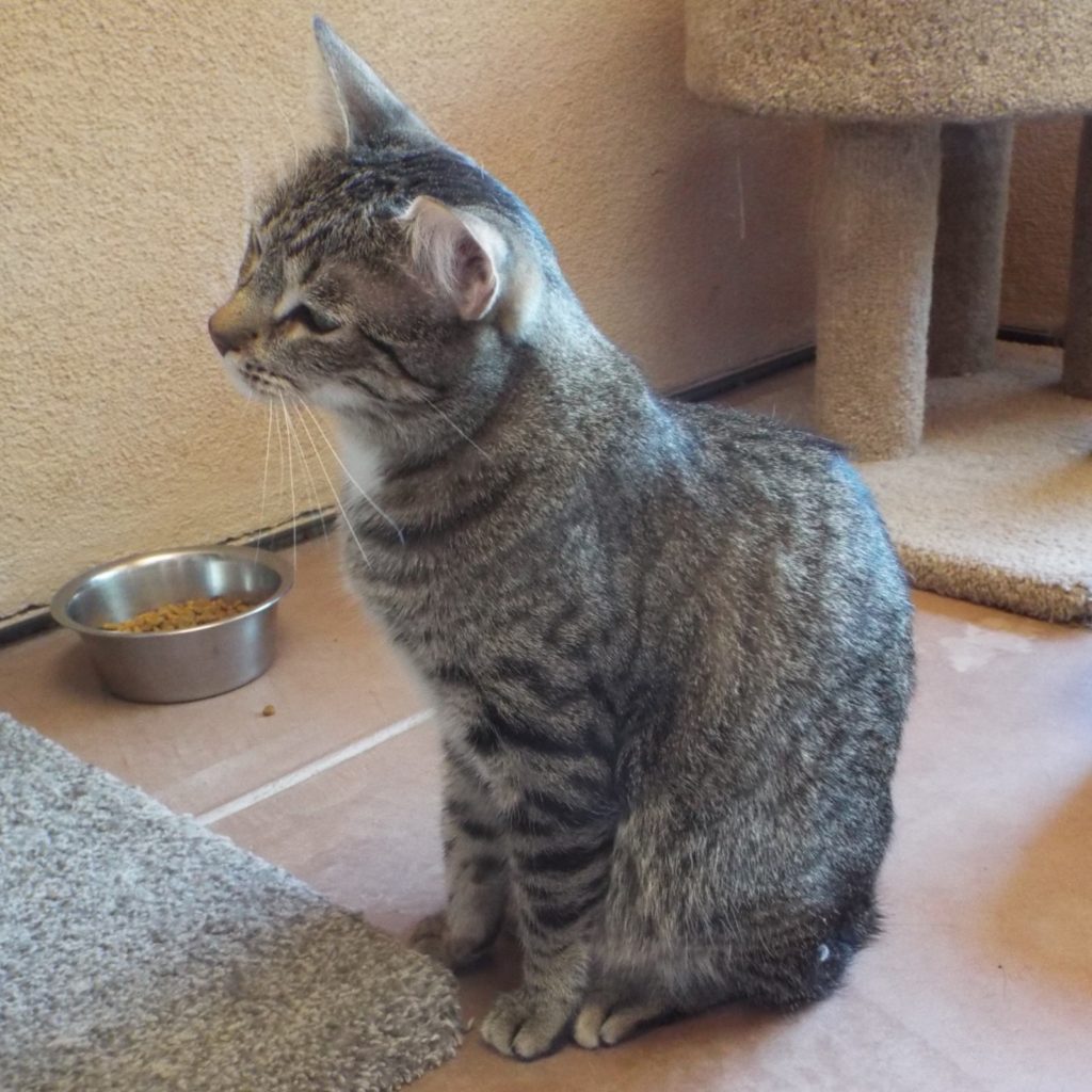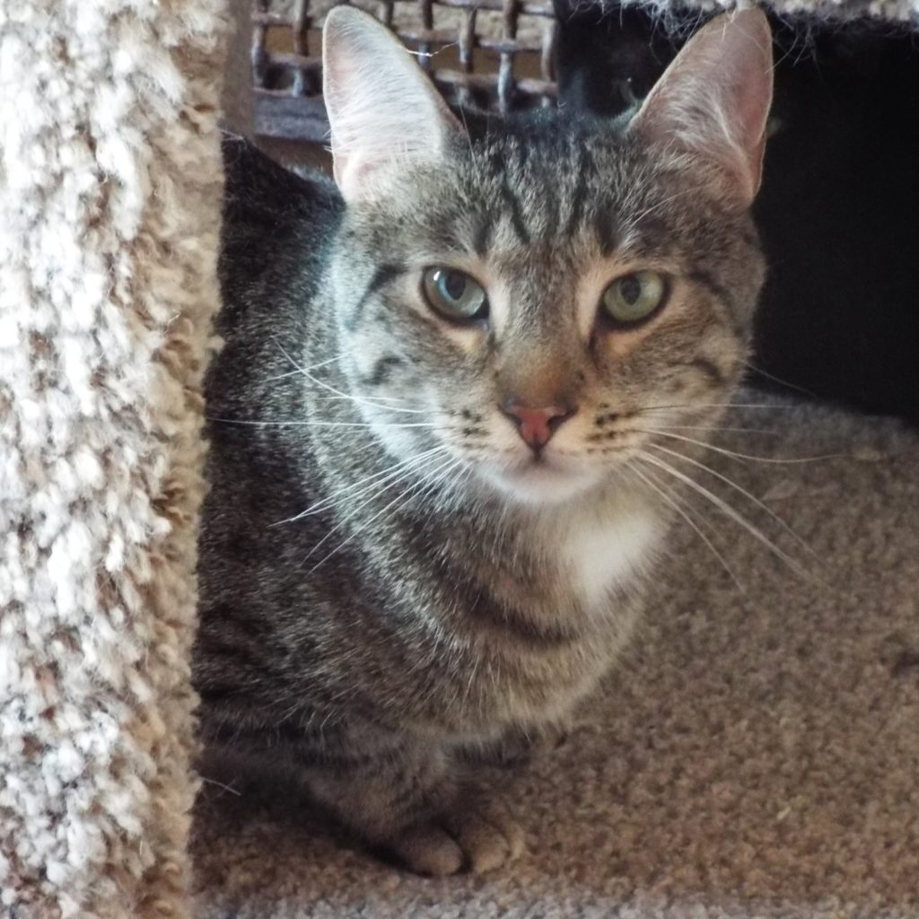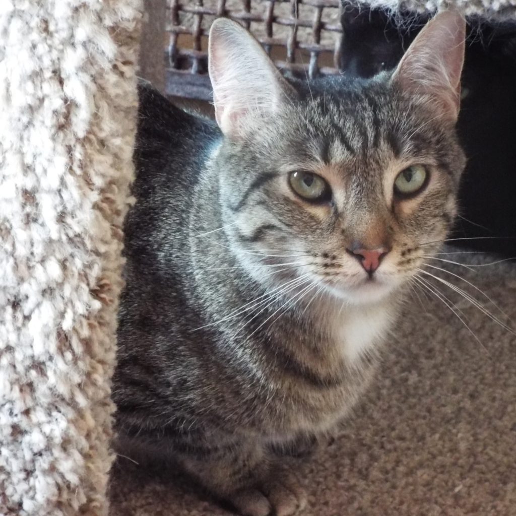 I was rescued from outside and brought to The Animal League with another cat. After what seemed like forever, we were ready to be adopted! My buddy was adopted but I’m still here. I’ve become receptive to interacting with humans, especially when they play with me! I can play a little rough sometimes so I don’t know about kids. I’m young and active. You can also pet me—I do like petting and having my ears scratched. I’m your basic grey striped tabby and I have pretty round eyes. Won’t you come play with me and take me home? I can promise lots of action!