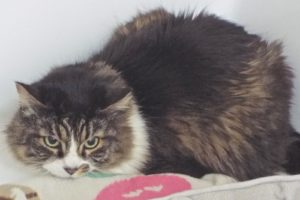 Mom could no longer care for me or my sister, so we were brought to The Animal League. Mom said I was shy, and I’m living up to that. In fact, I don’t often come out of my soft cubby. I’m sure the volunteers mean well but really, I just want to be left alone. I do now allow myself to be touched with a wand without hissing too much. I’m hoping someone can take me away from this (admittedly nice) place so that I can spend my days in peace and quiet. Can you please help? I have Vet Care Support for Life to carry me into the coming years.
