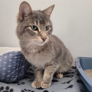 Help me, please, I cried! I was lost, and on a roof top. I jumped up there to get away from some predator that wanted to invite me to dinner – with me being the main course! A kind man rescued me and brought me to The Animal League. Meals have been regular here and I’m grateful. The life of a stray can have its challenges. Despite all the drama, I’m a friendly girl who leans into pets. My fur is a bit coarse, so I’d welcome some regular grooming, please. I do have gorgeous green eyes that smile. Come meet me and let me smile at you!