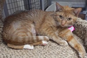 I am a petite young lady with golden eyes that just beg for a home. My kittens and I were brought to The Animal League by a woman who found us and couldn’t keep us. (You’ve heard that story before, I’m sure.) A very kind deed she did for us because we are all being very well cared for. My kittens are going into their own homes, and I am longing for my own. I have a lovely orange fur coat with striped legs and tail. The volunteers think I’m a beauty! I’m somewhat shy, but I enjoy their attention. I like to be petted. Won’t you please come meet me? We could be friends!