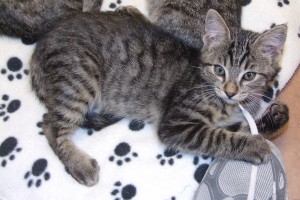 If you’ve even had the good fortune to have a passel of almost identically-marked tabby kittens clambering all over you vying for affection, you’ll know what a treat the volunteers and visitors had when my five siblings and I arrived and were added to an already tabby-laden room! Well, quite a few of them have already been adopted, but I’m still here and am half-past ready to move on to a home where I can bestow all my love on my very own people. Tabbies of all sorts are some of the most outgoing of felines, so you can be pretty sure that I intend to perpetuate that tradition throughout my life! Why not spend yours with me (or maybe another tabby too) ‘cuz you’ll be sure to double your (and our) fun!