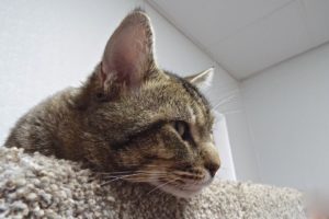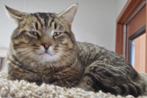 My name denotes admiration for certain qualities. As a stray, I appreciate being so named. Would you like to know my qualities? I’m a handsome, sturdy, gentle guy. I was found in a garage sleeping in a baby carriage by the woman who brought me to The Animal League. I checked out A-OK here and am finding my own kind of  creature comfort in cat tree cubbies. I’m learning the kindness of TALGV volunteers who talk with me and pet me. This is better than life on my own. However, even better would be for you to take me home with you! I’m waiting to meet you.