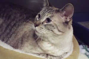 In case you’re the forgetful kind, my people said that I am the most reliable alarm clock you could ever want! I “remind” them when it’s time to feed me, and in case you’ve been a tad lax in the cleaning-the-litterbox-department, I’ll give you a semi-subtle nudge in that direction too! I’ve lived happily with them and my best friend, a Chihuahua (who I’d love to stay with!), all my life but when they took on the role of being foster parents, their new job kept them away from the house for 18 days at a time. I have absolutely no “bad habits” (okay, I’m not a big fan of kids), and not the least bit picky about my food, so if you’re looking a loving blue-eyed companion, I’m raising my paw!