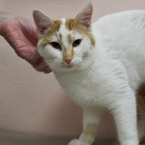 My feline buddies and I lived with a woman who loved us, but she became ill and could no longer care for us. That’s where The Animal League comes in! We were brought here and confirmed to be in good shape and very loving. My coat is mostly white with spots of orange. I really like playing with string toys. I’ve been hanging out on the cat trees here and looking for my next home, maybe with one of my former roomies. At my young age I’m active and would love to entertain you. Why not come in and meet me to see if we can work something out?