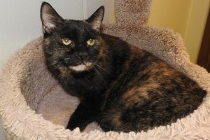 It’s pretty obvious that my mom was fond of torties ‘cause she had three of us! And despite what you might have heard about standoffish “tortitude,” we’re all just as loving and affectionate as can be. Oh, we’re pretty frightened at the moment since mom went into a skilled nursing facility and our lives have been turned upside down, but just sit and spend some time with us and you’ll see how much attention and petting we really crave. I’m a 15-year old lady who comes with free vet care, so it sure would be grand if you’d take me home (maybe with one of my housemates?) and let me get back to the important business of being your constant companion.