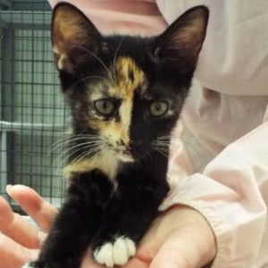 My sisters and I were found by a lady and brought to The Animal League as small kittens. We went to live with our foster mom, who had a hard time telling us apart! We are all what she calls “tortico,” mostly darker torti markings but with white (like a calico). I have a “harlequin” face, half black and half orange. I love people and being petted. Don’t believe my little sister, I am an active angel who just likes to explore. I liked to sleep up against mom’s leg or under the bed. Of course, I love to play! Come meet us all and let us charm you.