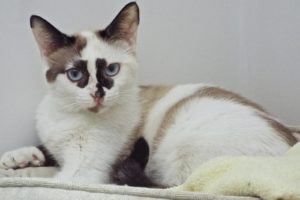 There are adventures and then there are ADVENTURES, and mine sure qualifies for the latter! I was spotted jumping out of a landscaper’s truck at the Dutch Brothers Coffee Company on Abrego and miraculously (picture the traffic there!) was scooped up by a Good Samaritan and brought here. The volunteers think maybe I was exploring my yard when his truck was at my home and decided to play stowaway, so happily things turned out for the best, and I’m ready to lead a more circumspect life! I’m a gorgeous, affection-loving, petite Snowshoe Siamese mix lady who’d like to settle down with you forever ‘cause I’ve had enough excitement for two or three lifetimes!