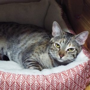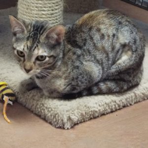 If you have a soft spot for survivors, then please come meet me. My mama had four kittens in a garden, and I’m the only kitten to survive. Mama and I were brought to The Animal League where we are enjoying tender loving care. I’m a lovely girl and sweet, too! My tabby markings are unique in grays and browns. And just look at my eyes! I’m alert to the next person I meet who might just become my human to love! I have my “kitten ways” with no previous ideas of “home,” but I hear that a “home” is a loving place that appreciates us pets! That’s for me! Please come meet me.