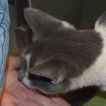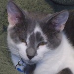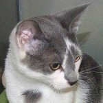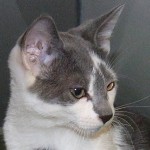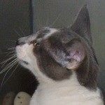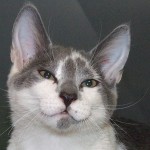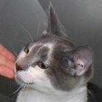 Hey, if you’re into abstract art and are looking for unusual in a cat’s markings, you’re going to have to go pretty far to find one as beguiling as mine! And of course there’s the personality that goes along with them! I wandered into the apartment of a gentleman in Via Alamos one day and he had no luck locating my owner, so since he couldn’t afford the pet deposit required to keep me (he really wanted to!), he had to bring me to TALGV. I’m about 4 months old and just as delightful a feline as you’ve ever met. I know that the summer doldrums will be a lot easier to tolerate when you have me to cuddle up in your lap and tell you how totally grand I think you are!