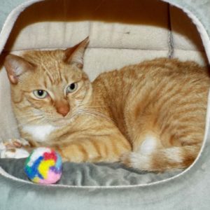 If you have a soft spot for survivors, please meet me! I spent the first few weeks of my life named Orange Julius. When my human could no longer care for me and her nine other cats, she brought us to The Animal League where I became Rover, part of the Travel Litter. Once adopted, I had the name Gin Gin. In that home, I lived with another cat who beat up on me. I lived in constant fear. Currently, I’m hiding in my cubby. Will you be the kind, patient person to adopt me into your safe home? I need Tender Loving Care to become self-confident—no matter what my name is.