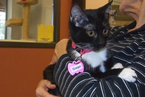 So with names like Sage and Oregano (Parsley, Rosemary, and Marjoram were already adopted!) you just gotta know that my sibling and I will spice up your life no end (okay, technically we’re herbs, but you get the drift!). The kind lady who rescued our mom cared for all of us until we were ready for our own homes (I guess six of us might have put her in the “crazy cat lady” category!). Well, here we are, and we’re all a hoot if I do say so myself. With our bespattered black and white fur, random abstract markings, and winning kitten ways, you couldn’t go wrong with us. Do yourself (and me!) a favor and make 2015 the “year of the cat” in your life!