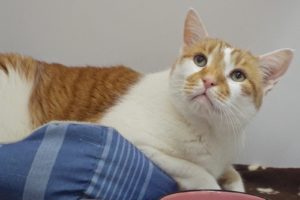 Living with my human for eleven of my twelve years, I had a good life. Friendly and affectionate, I like being petted and groomed and playing with toys. I was my human’s sweet companion with a low-key personality who enjoyed sitting in his lap. I lived with two dogs and got along with adults and children. When my human found BlackJack, he became my feline buddy. We came here together but don’t spend all of our time with each other. Due to my age, I come with Vet Care Support for Life. If you are looking for a handsome cat, come meet me!