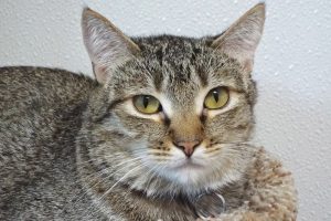 At the moment, my sister, Queenie, and I are doing our version of “Where’s Waldo?” as we’re really confused since we lost our home. We’re keeping a VERY low profile (you can usually find us behind some cubbies), but I’m sure once we realize that all will be well eventually, we’ll revert to our old selves. Since our dad’s fiancé is allergic to cats we couldn’t stay with him, but he said in “normal” times I’m a loving lady who’ll sit in your lap, rub against you, and ask to be petted. If you can help me adjust to a new life (maybe with Queenie too – that’d be awesome!), I promise to love you forever!