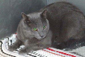 My people are moving across the country to a place that doesn’t allow pets (why would anyone want to live in THAT kind of home?), so I’m back at my alma mater eager to find new “digs” with a lively, but settled, family. I lived with my senior mom and dad for three years, and they said that I’m still very active, playful and “kittenlike,” have absolutely impeccable house manners, and like to “chase things” (especially cat treats!). They said that I seem to be more affectionate with women (I particularly like their laps!) but not “averse” to men (whatever that means!). I’m a gorgeous thick-coated Russian Blue lad who will undoubtedly bring my own special joy to a family that wants some feline action going on!