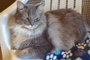 I’ve been here almost six years and am soooo ready for a new (child-free) home! Some of the volunteers are enormously fond of me because I’m the first to jump onto their laps (and others not so much because I’ve nipped them – which is probably why I’m still here!). But I haven’t done that for ages, as they’ve learned that I only want so much petting and then I’m done (I purr plenty though just sitting in your lap). I prefer not to be picked up, but I’m really too heavy for that nonsense anyway! (Like humans, accessible food 24/7 and too little exercise are to blame for my girth!) So if you’d like to share your life with a handsome gentleman who doesn’t require much petting, come down and see if I like you.