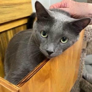 Wanted: a fur-ever home! As a Korat, I form strong bonds with my humans. When my human mom had to move, she brought me along with two other felines into The Animal League. I’m missing my human and my home. If you’re looking for an intelligent, playful cat, I’m your guy! In some cultures, Korat cats are considered “Good Luck Cats.” Wouldn’t you like to have some good luck? Consider giving yourself a gift of ME. I’m a sturdy guy who promises to be your loving companion. Just speak to me as you caress my soft grey fur coat. You’ll be charmed! Please come meet me.