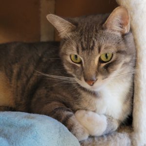 My bonded friend Squeaker and I had a home with a wonderful senior man. Unfortunately, he passed on and here we are at The Animal League waiting for our next adventure. The volunteers are doing great in caring for us. I have a good relationship with the other cats here. The vet tech described me as “a very sweet boy,” but I am painfully shy, also quiet and laid back. It will take time to get to know me and for me to be comfortable with you. Are you a patient person with room for two in a calm, quiet home? Please come meet us and see if we’re “simpatico.”
