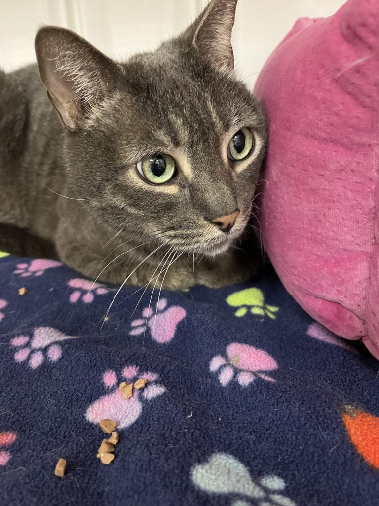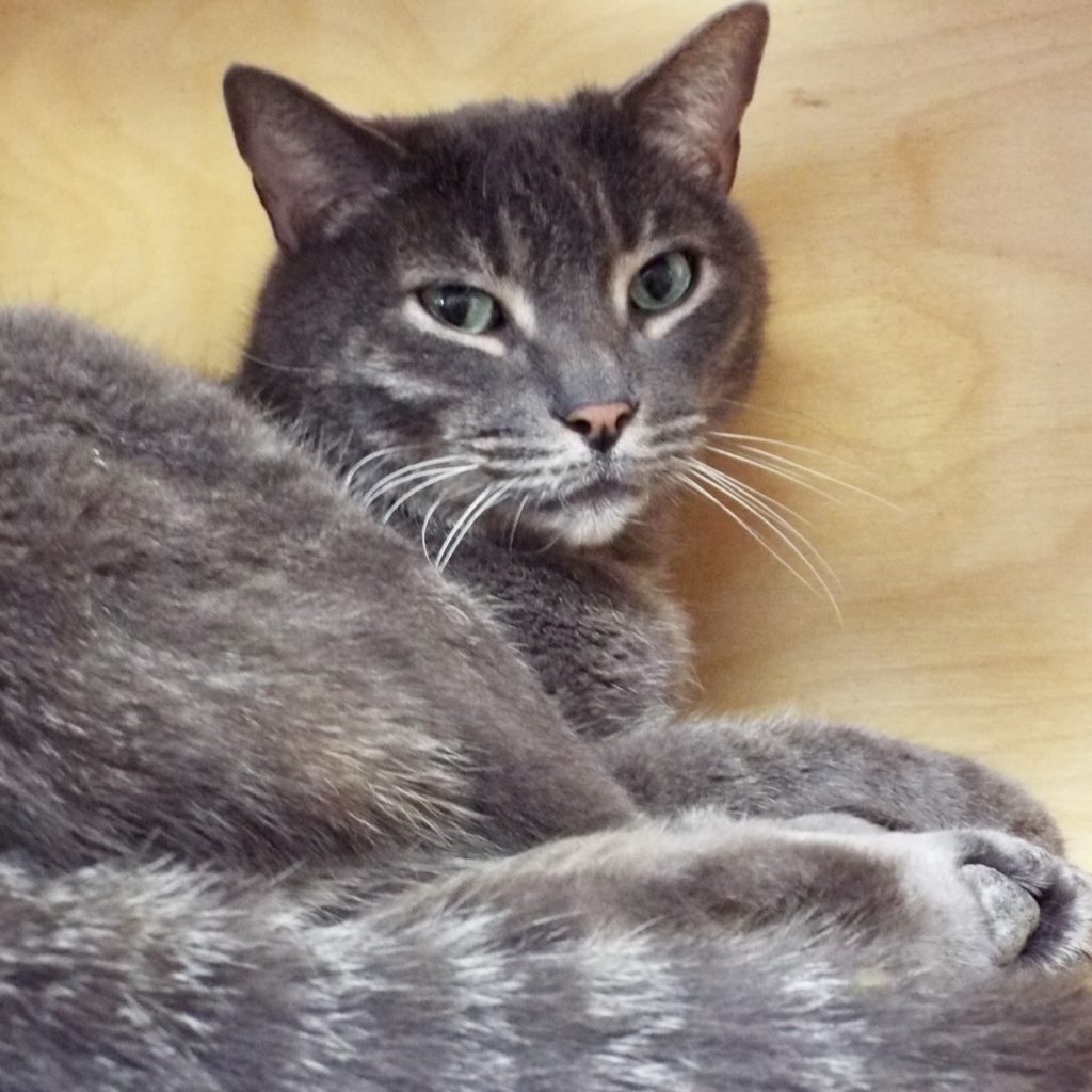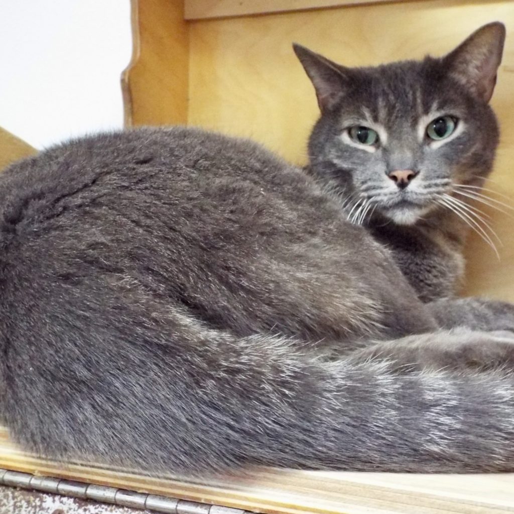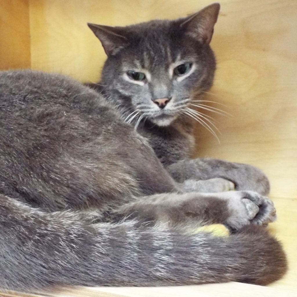 My brother Dexter and I survived our owner’s death and being left outside—talk about a heartbreak! I’m still getting over it. Thanks to a kind neighbor we were trapped and brought to The Animal League. I’m getting used to a new place and like hanging out on a perch in the catio. I like the petting, brushing and whatnot that I get from the volunteers. What I think would really be grand is to be adopted into a new home soon. I’m a handsome grey tabby with beautiful bold stripes. Come on, what do you say?