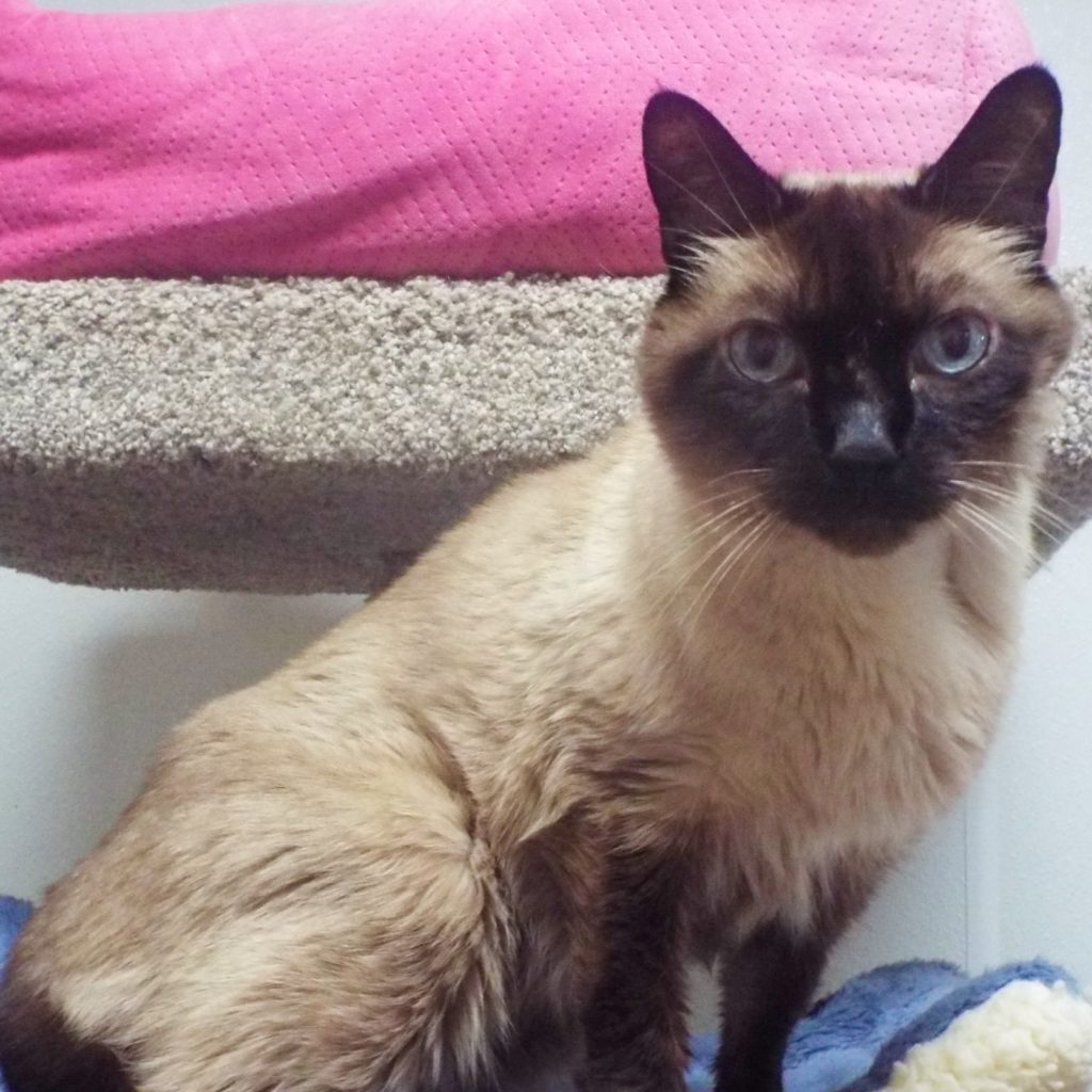 When my humans’ health failed and they had to move, my feline companion and I both had to move, too. We came here to The Animal League where my companion has already been adopted. My turn! I’m a handsome Seal Point Siamese boy with blue eyes. I’m gentle, but I don’t like children. At my age I come with Vet Care Support for Life, so don’t hold back on that account. I like sleeping in the cat tree here and enjoy the petting and chin scratches from volunteers. I purr my pleasure. I’m not too active. If a sedate addition to your family is what you desire, look no further.