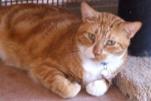 Hey out there! I’ve been at TALGV for THREE YEARS now, and I think it’s time that someone took a look at me (especially with these gorgeous blue eyes — really unusual in an orange tabby!). Before I arrived, I lived with my senior mom, four other cats, and two dogs. Although I got along fine with all of them in my home, the number of cats here sometimes overwhelms me, so I often keep a low profile. I’m trying not to though and if you’ll come sit in my room and “talk nice” to me, I’ll bet I can convince you that I’m the one for you. Please give me a chance and try it — it might be Karma.