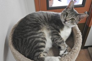 I’ll bet there are many pets who shudder when they hear that their people have “health issues,” ‘cause that usually means a big change is coming in their lives! Well, that’s what happened to me, but mom left lots of information about my personality: I’m playful with feathery wands, catnip-sprayed toys and bouncy “there’s-a-treat-hidden-inside” games. I’m not a lap cat, but am affectionate and like to sit NEXT to you; I “tolerate” small dogs, but don’t like other cats; I’m not a picky eater; and I’d like to sleep with (not on!) you. At about 18 months old, there’s plenty more to learn (and enjoy!) about me, so won’t you give me a chance?