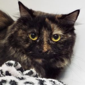I was found as a kitten out of state and somehow wound up here in Arizona. Now, though, my family is moving and I can’t go with them. I’m a little discombobulated trying to figure out what’s next. I keep to myself in a soft covered bed, and I hiss a little but the volunteers can stroke me with a wand and that’s OK with me. I didn’t get along with other cats before, but I tolerated dogs. My humans say I’m gentle and I like laser toys. I’m a petite tortoiseshell girl who also like treats. Isn’t there someone out there who could help me feel secure again?