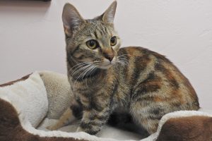 What traits are you looking for besides gorgeous? Playful, loving, friendly (with all creatures, great and small!), young, and, best of all, AVAILABLE! That’s me! They say (not to toot my own horn too much!) that I have the most amazing Torbie coat –marbled chocolate caramel set off by my topaz eyes – and that’s just the beginning. After searching the neighborhood for my owners, the lady who found me really wanted to keep me, but she had terrible allergies, so that precluded a long and happy life together for us. For YOU though, here I am – pert and pretty and ready to check out my new digs, just in time for a new year!