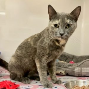 They found me roaming around a cemetery and felt I could use a better home—I agree! I’m not sure how I got there, but I like my current place much better. I am enjoying the regular meals and safe place to sleep. The volunteers can pick me up and hold me a little, and I really like the chin scratches. My short coat is a mixture of greys and I have a creamy bib. At my young age I probably would like an active home, where I can run off my energy and play to my heart’s content. Does that sound like your home? Let’s meet and get acquainted.