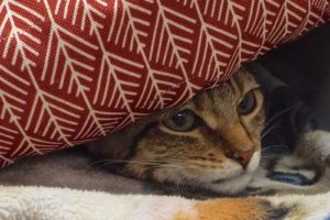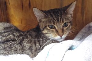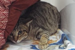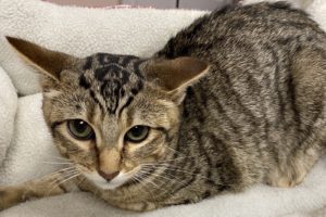 I think I used up one of my nine lives getting here! I was found in the desert with mom and sister Chandler. Thankfully someone found us and brought us to The Animal League, and we are all okay. I’m ready for a good home with Chandler, with whom I’m bonded. We are identical brown tabbies, but we have a slightly different pattern of black on our foreheads. I’m shyer than Chandler but she gives me courage. I like to hide out but will come out if encouraged. I’m looking for a home where Chandler and I can charm you and keep you company. Doesn’t that sound great to you? Come look us up.
