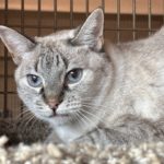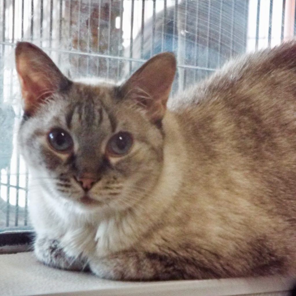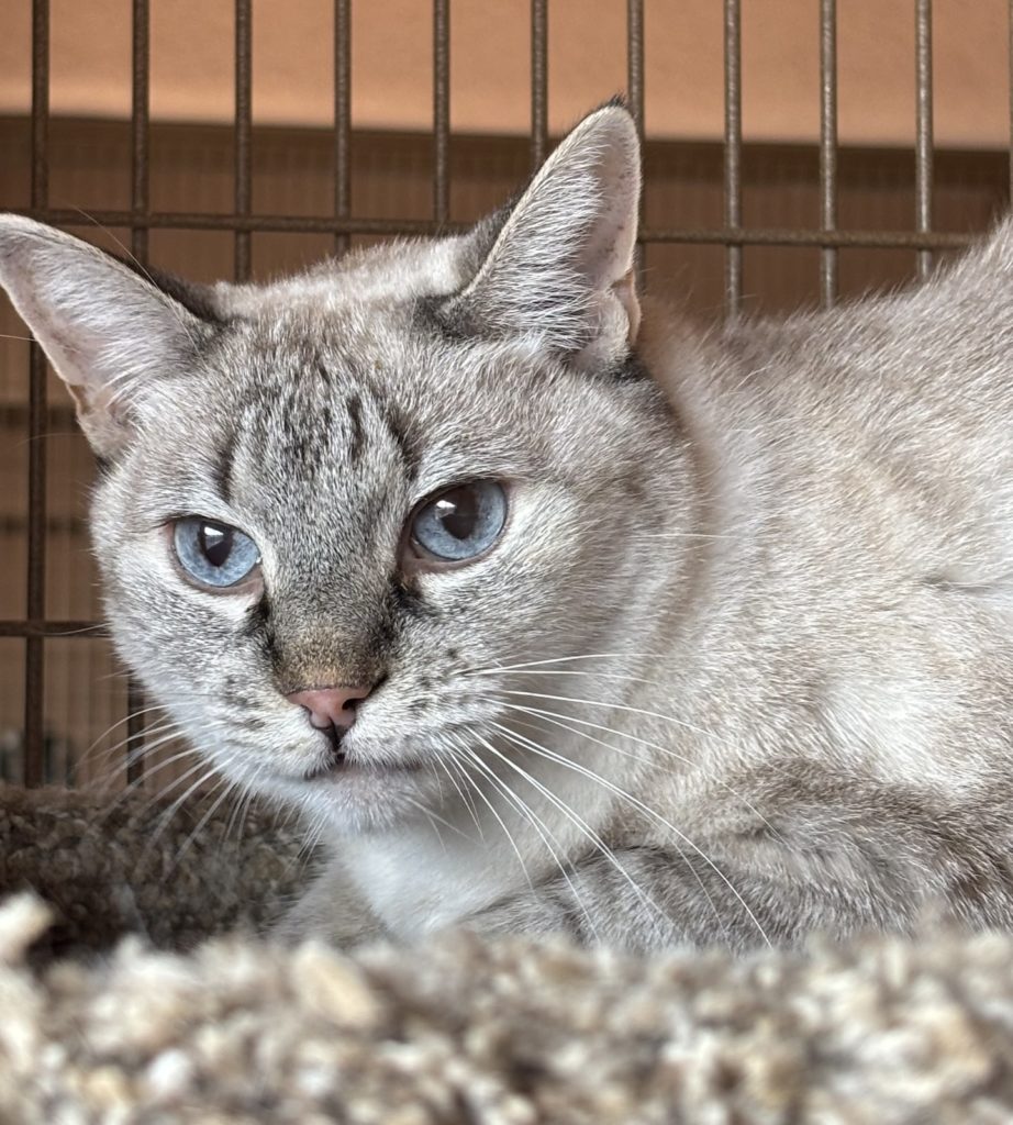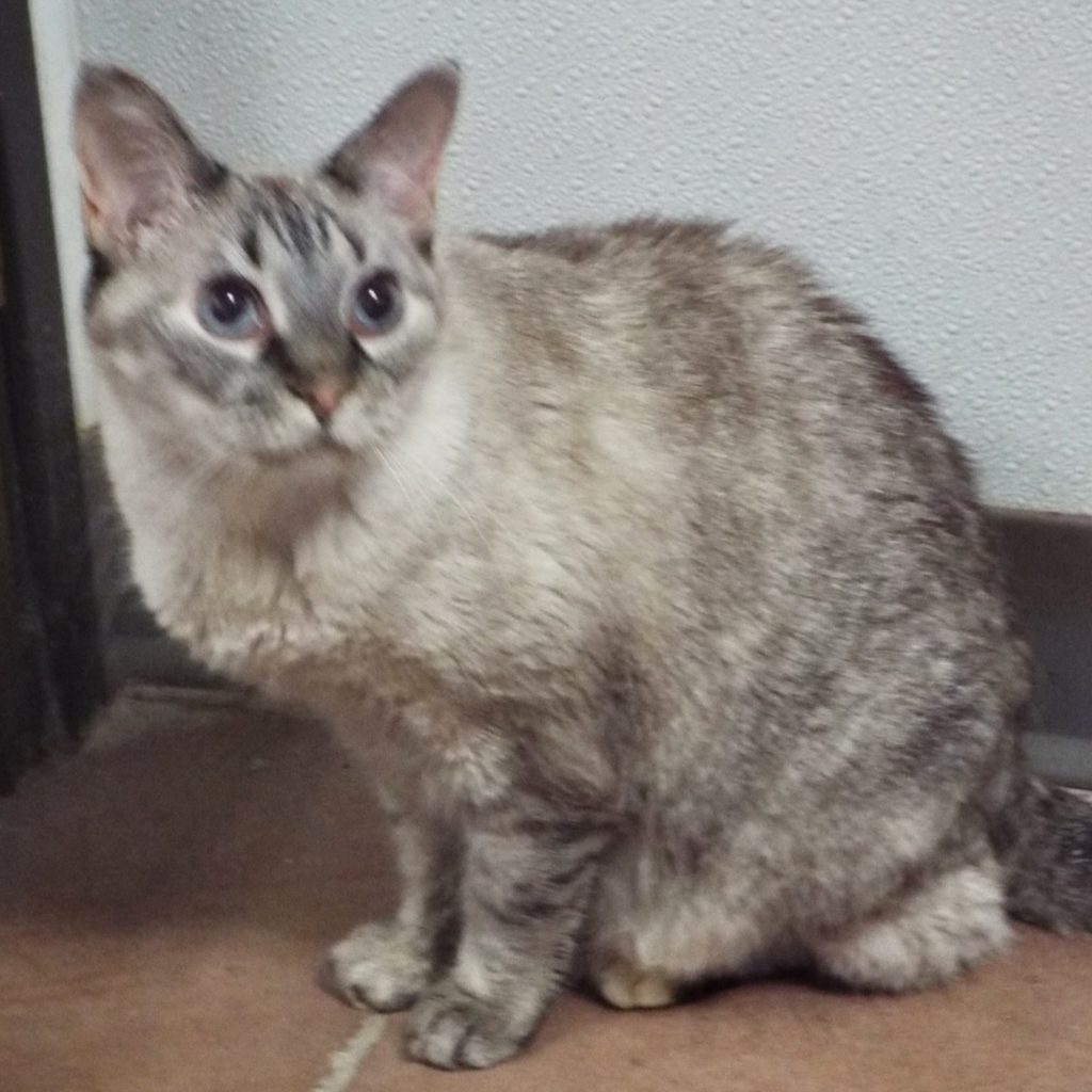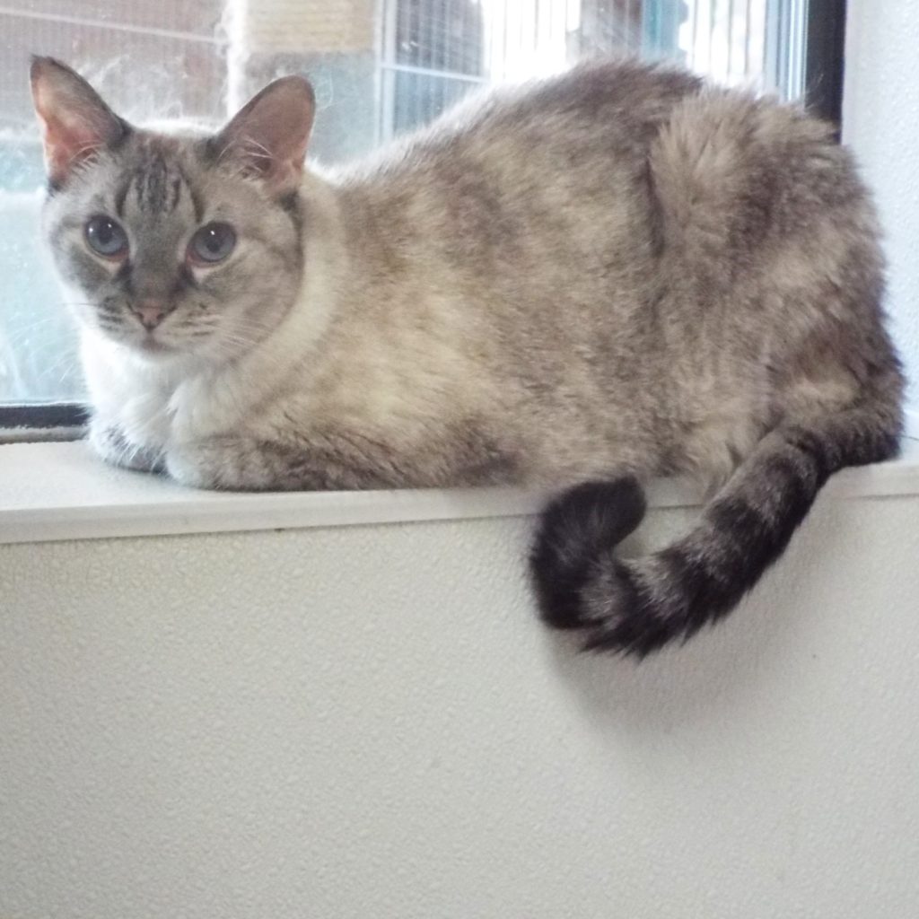 Here’s the deal. Mom passed away so I’m at The Animal League now. It’s okay! I usually sit on a windowsill or in the outside catio, and the volunteers know that I like brushing, petting and scratching. My coat is light grey with stripes, and my Siamese side comes out in my blue eyes. I’d really like a chance to live in a quiet home for my senior years. I come with Vet Care Support for Life so don’t let my senior status stop you! I can be your companion if you give me half a chance. Come meet me!