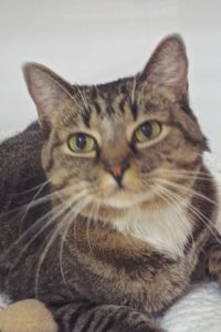 I am a friendly, “chill” feline who loves human companionship. Since birth I lived with my human who can no longer care for me. Although I am playful, I prefer laps over toys. Sometimes I share that lap with my best friend Mimosa. We are a bonded pair and must be adopted together. I like to sit in chairs or high cat trees. Although I’m curious about outdoors, I realize that is a no-no! I prefer being a comfort to my human. I have also lived with another cat, as well as a small dog. I am gentle and tolerant of children. Why not expand your social circle to include Mimosa and me? We’re waiting!