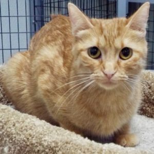 My life has taken a real turn for the better. After I was found on the side of a highway out of town, I was brought here and discovered to be in “a family way.” Well, that’s all behind me now, and I’m looking ahead to brighter days in a safe home. I’m a petite orange girl that has a sweet disposition. I like petting and scratching on the chin, and here I’ve been lounging in one of the cubbies on the wall where I can see what’s going on. Thankfully there are no semi-trucks or speeding cars around here!  I’m enjoying the peace and safety. What I’d like next is a real home!