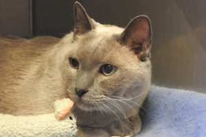 How many cats have you seen that have an “outie” bellybutton? OK, that’s probably not the most distinguishing of attributes, especially since I’m also an unusual Tonkinese (a cross between a Siamese and Burmese) that you don’t see every day, but it does make me “stand out” as it were! After my mom died unexpectedly, her best friend (who’s known me all my life) brought me here and said I was very sweet, not at all aggressive, and although a bit shy, as I learn to trust you, I’m more and more outgoing. I’m a declawed 15-year-old gentleman (with free vet care) who adores being combed and brushed and sleep with you, so if love is what you’re after, that makes two of us!