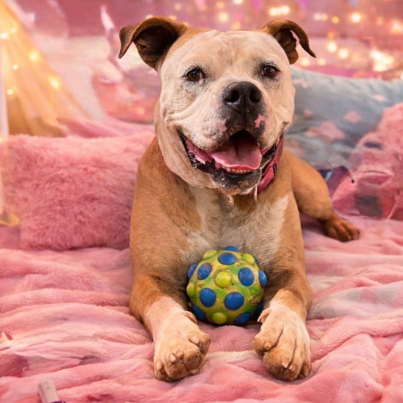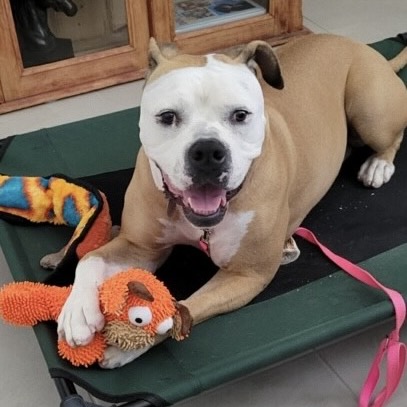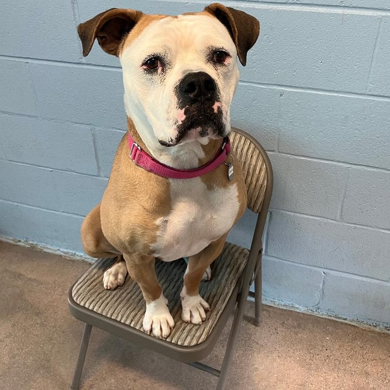 What’s a girl like me gotta do to get adopted? My volunteer friends figured out what I knew all along: I really enjoy other dogs! Since I’m a big, confident girl, I can unintentionally intimidate shy dogs, but if you have a friendly, social dog, I’d love a buddy to play with. House manners? I aced them when I was in a foster home. I’m a total pro at house life — cuddles, calm time, comfy beds, I loved it all. I’m strong on leash, sure, but give me a backyard and I’m perfectly happy exploring, sunbathing, and being your resident homebody. Please…don’t judge me by my loud kennel barking — I just want people to notice me. Ask to meet me outside the kennel, and you’ll see it: I’m pure perfection, just waiting to be picked.