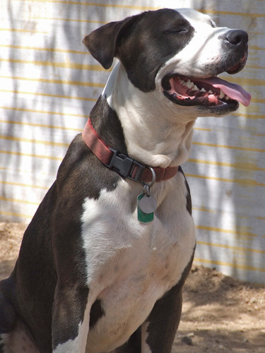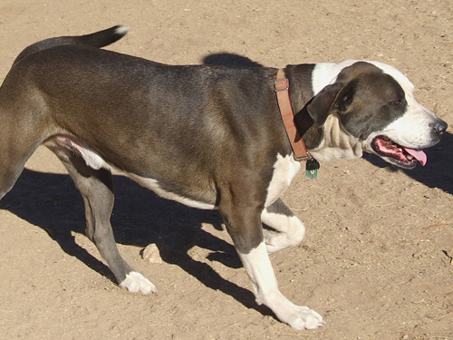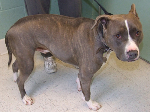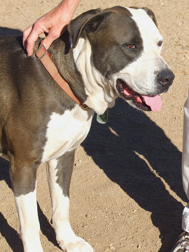 One happy day not long ago, my new person and I left TALGV together, all smiles and blissfully unaware that our time together would be far too short. When she died, I came back here, where my many friends have given me love and understanding. They encourage my hopes of another chance at happiness, saying I’m a really sweet fellow with an easy-going nature that lots of people will like. At 99 pounds, I’m something of a gentle giant, loving and calm, and quite willing to focus on pleasing you, like being well behaved when we go for a walk. I’m a 7-year-5-month-old Staffie mix male with amber eyes and a sleek gray coat, a very handsome guy inside and out, who’s looking forward to my forever happy home with someone wonderful like you.
