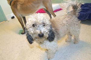 Bailey is a cute, sweet, and gentle 15-pound, 2 1/2-year-old male wire-haired Yorkie/Doxie mix who needs a new home because his owner died recently. He loves people and warms up to strangers quickly, likes other dogs (is sometimes a bit shy around large dogs), is good with cats and kids. He is learning to walk on leash and knows sit. He likes chasing and retrieving his ball. Bailey is completely house trained, can use a doggie door or asks to go out. He is healthy, is neutered, and all shots are up to date. Monthly grooming is advised. Current foster would keep Bailey but already has 5 dogs and 2 cats. There is no adoption fee