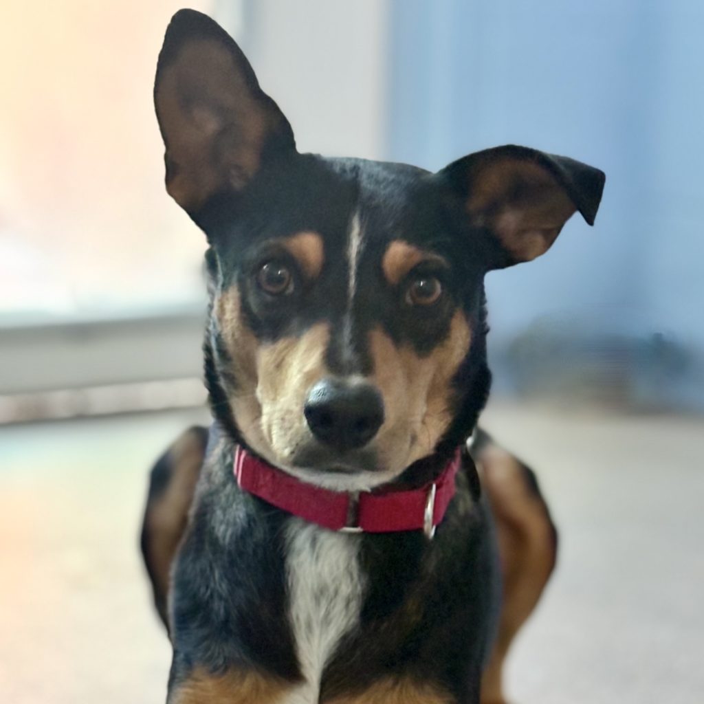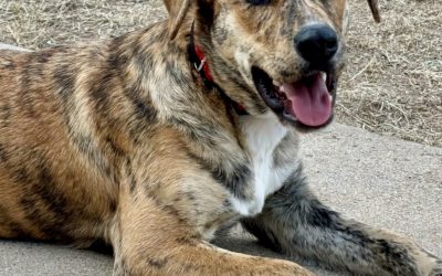 SPARROW is an affectionate and smart 7-month-old, 43-pound brindle and white hound mix female that needs a good home. She has some obedience training (knows “sit,” “lay down,” “off” and “no”) and is currently learning new tricks. She is crate trained and leash trained, but needs a bit more house training. She is in good health, spayed, up to date on shots, and medical records are available. Sparrow loves playing with other dogs and is great with children, but cats are unknown and chickens or small livestock are a no-no. She is eager to please and loves human attention. Sparrow has a sweet, gentle, people-loving personality and you will be rewarded with her loyal companionship.