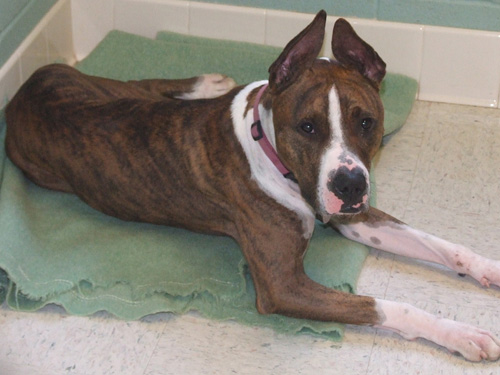 High Five! A nice lady found me and brought me to TALGV. I stayed with her and her two dogs for a couple of weeks, but we found I did not like sharing with her other girl dog. I did get along fine with my finder’s male dog, though. The first thing you notice are my big radar ears, then my pretty brown and white pinto coat. I am housebroken, know all the common commands, and play fetch. I have impeccable leash manners, so just say the word and I’ll jump in the car to go for a hike with you. I have a bit of an alpha personality, so I’m picky about my dog friends and probably prefer to be an only dog, or perhaps share with a submissive male dog. But I do so love playing with people. I’m pretty laid back, even here in this strange environment. Come on down and say Hi, so we can work out a deal and shake on it.