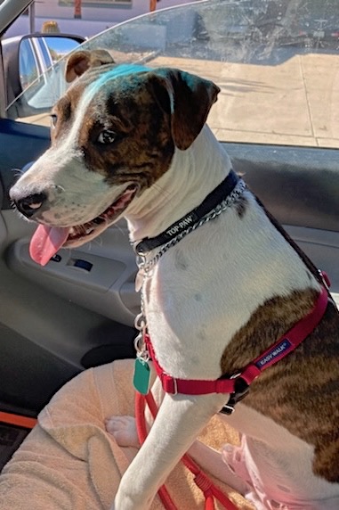 I’m a very friendly, outgoing chap who loves everybody, and it seems everybody loves me. No brag…just fact! I’ve also been good with children (ages 2, 4, 5, and 6). It’s been mentioned I’m not good with small dogs, and I definitely don’t like cats, especially after one recently scratched and injured my eye. I’m still getting treatment! I’m not crazy about the heat, but I do love going for walks and car rides. I enjoy spa treatments (baths), but hate water hoses. I’m leash trained, good in the house when left alone, and can use a doggy door. I know the commands “sit,” “stay,” and “come.” I’m very affectionate and enjoy attention. Instead of just living the “life of” Riley, why don’t you take me home and live your “life with” Riley!