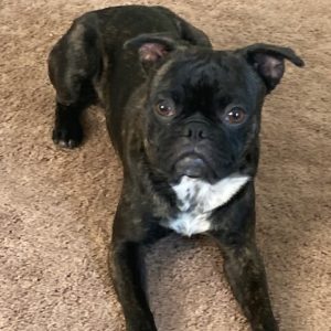 Bugsy is an affectionate and smart 15-month-old, 21-pound, Pug/Boston Terrier mix male that needs a new home because he no longer gets along with his brother. He is house trained and asks to go out. He is in good health, neutered, up to date on shots, and medical records are available. Bugsy loves to catch balls and is very playful, but he would benefit from more leash training. Other dogs and cats are not his friends; children are unknown. He will sit for treats but can be slow to warm up to strangers. Bugsy is a gentle and loving companion who prefers to share your bed.There is no adoption fee. If you will welcome Bugsy into a loving home as part of your family, please call Matt any time at 520-490-6791.