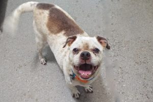 I am a short little guy with a tooth that sometimes peeks out and people say I make them laugh. I like hearing it because usually they laugh and then immediately scratch behind my ears. My mom could no longer take care of me and Lizbeth, but she said that I got along well with kids and that I like some other animals but not all. She also mentioned that I was good when left alone in the house. You should know that I’m a bit of an adventurer, so a fenced yard where I can roam about would be just great! Or we can take walks together, perhaps to the park? If you like that and a companion to snuggle with at the end of the day, I’m here, waiting!