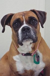 In the winter of 2018 I was found wandering alone and scared in Tubac. A patient man lured me with food and took me to TALGV. I’m a 6-year-old female Boxer who hopes to find a home with caring people and a canine buddy. I was gentle with my adopted family’s grandchildren and tried to befriend their dog. But when he just ignored me, I got depressed and stopped eating. They worried about me and brought me back. Now, in my foster home, my doggie “sister“ has taught me “down,” “crawl,” and how to use the doggie door. We love snuggling together. My foster parents say I’m skittish when hearing loud noises like slamming doors, but I’m not a barker. I’m shy at first, but ultimately I’m known as “the affectionate love bug.”