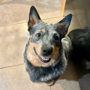 Life can be lots of fun when you’re an Australian Cattle Dog like me! Blessed with boundless energy, I’m a smart and loyal dog, who finds my people easy to love. I can run like the wind and enjoy lots of lively play, but my favorite thing is being with someone who loves me back, whether we’re going for long walks, playing ball or frisbee, or I’m curling up at your feet. I will ask to go outside, have learned to sit, stay, and fetch (especially with treats), and have been crate trained. My TALGV friends say I’m an exceptionally sweet dog, but I do not get along with cats. You can also call me a Blue Heeler—an especially beautiful Blue my friends say—but my biggest hope is that you’ll call me yours.