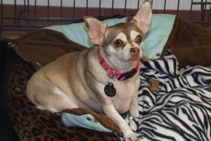 After my dad died, my housemates all found homes immediately, but for some reason, I got overlooked in the “rehoming” department. I’ve been with a foster mom for a while, and she says I’m a real “princess” who isn’t content with just your lap or sofa, but seek out cushy pillows and cushions to lounge on. She said I follow her around the house, never stop wagging my tail, am a real “stitch,” and if she didn’t want to be a “failed foster,” would keep me in a minute. I’m a 7-year-old Chihuahua lady with a charmingly masked face who’ll win your heart in a flash! I may seem a bit shy at TALGV, but get me in a home, and, Katie bar the door, I’m a love machine!