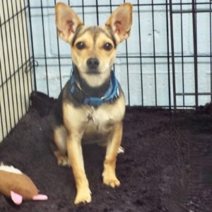 Yes, I’m small, but I’m also young, so I like to do more than just sit on your lap. I love to play with my fellow four- and two-legged friends! I’m looking for a household with plenty of attention and treats. I am not keen on small children, but seem okay with older ones who know they need to leave my (absolutely stunning) ears alone! Cats make me nervous, and I’m probably a terrier, so I would need to be taught not to chase them, because that game is FUN! Don’t get me wrong—I’m a well-behaved sweetheart who goes outside to potty and walks great on a leash—but I am still looking for some adventure. If you want snuggles and play in a pint-sized package, I’m your girl! (August 2025)