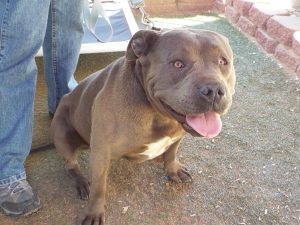 I was found in the shadow of Mount Hopkins, sitting in the shade and probably looking very peaceful because I am a sweet, harmonious kind of dog. However, on that day, my finders reported I was very thirsty, hungry, and limping a bit. I welcomed that rescue with all the big dog gratitude I could muster. And although I’m only 74 pounds, volunteers tell me I have big dog charisma, too—a kind of charm that comes from my gentle, friendly personality. I’m about 1-1/2 years old, a gray Staffie mix female, and I’d probably been alone for a while, judging by my dirty coat. As you know, that’s no way for a dog to live—I’m made to be someone’s loyal, loving companion. And maybe—my hopes are high—that someone is you.