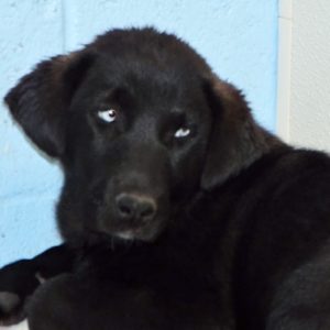 Are you a discriminating person looking for just the right buddy to spend your life with? Then we have a lot in common. I am a gorgeous girl with a sleek, black coat and mesmerizing blue eyes who will grow to be a big dog. I’m still a puppy, but I like to play it cool and observe before joining in with whatever fun is happening. I’m told I am very smart and pick up commands quickly. I am also quite loving once I get to know you. I didn’t get a lot of experience with people early on in my life as my siblings and I were on our own, so I would love a home with another dog to teach me the ropes or a patient human who understands that sometimes the best love is found when we wait patiently for the “right one” to come along.