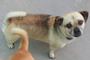 The story of how we came to be here is a bit convoluted—we were in a park, going this way then that, there was someone’s daughter—but two things are for sure: First, I came with Samantha, another Pug mix female, and we’re very happy together. The other sure thing, according to our new people friends, is that we’re two little dogs with great big hearts. Calm and sweet, we’re naturally friendly. (Samantha may be slightly braver than me; she’s a little bigger and one year older.) Some people think our Pug-like expressions are kind of comical, but we know you’re laughing with us, so it’s all good. If we make you happy just by being ourselves, that’s perfect for us, too. So how about we get together and give it a try!