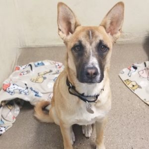When my dad was being deployed and we said our sad goodbyes, he assured me I was ready for a wonderful new home because, he told me, “You’re an amazing dog!” Maybe he said that because I’m a girl who can easily make friends with people and other dogs. Although sometimes shy, I’m soon friendly, and I love to run and play with other dogs. In quieter times, human friends praise me for being naturally sweet and affectionate. I’m a tan and white shepherd mix, 42 pounds at one year old, who’s been housetrained, understands words like “sit” and “lay down,” and does pretty well on leash. (We shouldn’t bark at trucks, right?) So, yes, I’m ready to be someone’s loving, loyal and playful dog in a wonderful forever home. Could you be my someone?